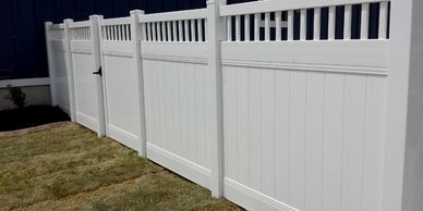 This Combination Of Vinyl Picket Fencing And Privacy Fencing Are The Perfect Pairing Of Style And Functi Vinyl Picket Fence Vinyl Fence Panels Vinyl Fence Cost